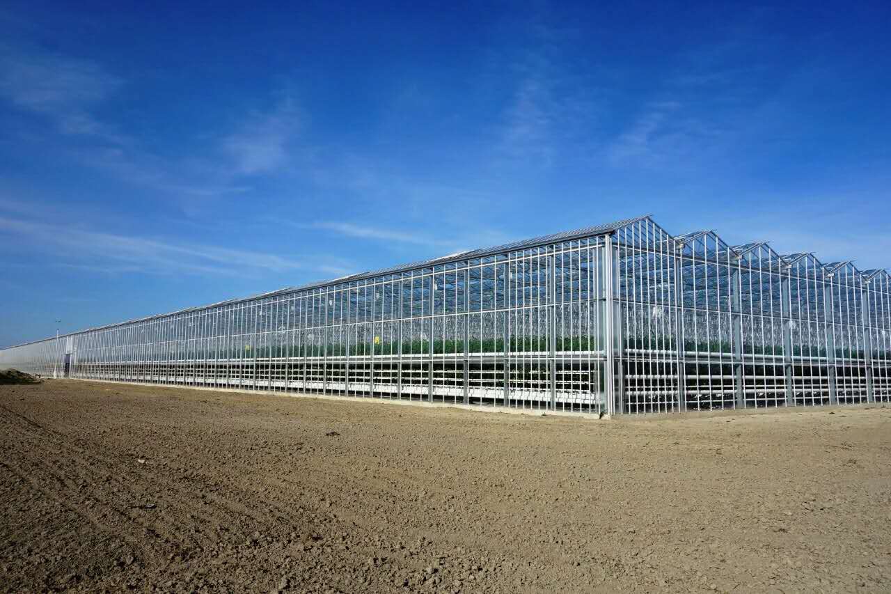 連棟全玻璃溫室以VENLO型結(jié)構(gòu)居多,跨度多為6.4米,后經(jīng)過(guò)我國(guó)設(shè)施園藝領(lǐng)域不斷開(kāi)發(fā),設(shè)計(jì)出9.6米/10.8米/12米大跨度玻璃溫室;玻璃溫室主體結(jié)構(gòu)主要包括主體骨架(立柱、桁架、天溝、天溝托架、接露槽、標(biāo)準(zhǔn)件等),屋面以上采用全鋁合金結(jié)構(gòu)固定頂部玻璃材料,鋁合金材料針對(duì)玻璃溫室專業(yè)開(kāi)發(fā)磨具生產(chǎn),其專業(yè)化程度較高,安裝程度復(fù)雜。