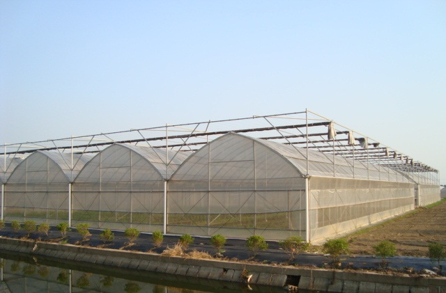 首先溫室位置必須避開高大建筑物出風(fēng)通道,確保不受陣風(fēng)、季風(fēng)或者熱帶風(fēng)暴的沖擊;其次溫室持續(xù)使用期內(nèi)周邊20m內(nèi)不出現(xiàn)高度超過3m的高大喬木,既做到始終不遮陽光,又可以避免因樹木換季落葉而增加天溝保潔和維護(hù)的難度,還可以避免高大喬木在受到病蟲害侵染后產(chǎn)生的污物對薄膜等材料的污損。其次注意地勢的高低,考慮水災(zāi)的情況。