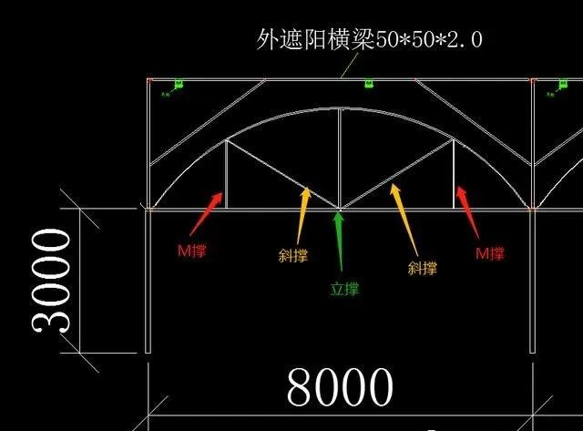 溫室大棚天溝上部的結構為半圓拱型結構,我們常見的拱形組件是圓拱和立撐桿以及斜撐桿。如果您考慮到造價的經(jīng)濟性房,不想把拱桿以及橫梁的型號增加太多的話,那您可以增加一套M撐桿。M撐桿是位于斜撐一側的一只小立柱,左右各有一只。其作用為加強拱面的支撐性,其長度很短,增加的造價很少,但是起到的作用很大。不僅能提高其抗壓性,還能提高其抗風性能。