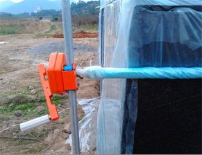 在棚頭拱架兩側(cè)通風(fēng)口安裝卷膜器滑桿,長(zhǎng)度1 m,用雙拱卡連接或鋼管焊接在拱桿上,卷膜器安裝在滑桿上,卷軸安裝在頂膜的下端,用卡箍將棚膜下端固定于卷軸上,每隔 0.8 米卡 1 個(gè)卡箍,通過卷膜器限位功能卷放通風(fēng)口通風(fēng)。