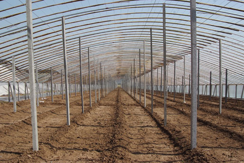 多數(shù)情況下,新棚墻體建設都是從棚中間取土,且多是中間最低,兩邊稍高。大棚建好后,需要重新整平地表,以利于今后的種植操作。