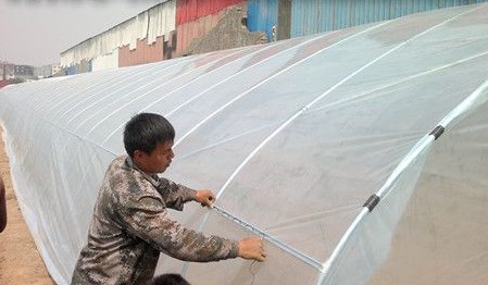 我們經(jīng)?吹讲簧倥飸舻那澳樑锬け慌锩嬷窀“穿破”了,即便采取布條包裹,也很難避免在大風等惡劣天氣下鼓動棚膜將其穿破的情況。我們發(fā)現(xiàn),凡是易被竹竿穿破棚膜的棚室,其竹竿的鋪設均不合理,即竹竿高出前臉橫桿,在覆蓋棚膜后,兩者接觸時間一久,便會被穿破。像這種情況,菜農(nóng)也只能用膠帶粘補。否則,冬季冷空氣從此進入,減低棚溫,為害比較大。