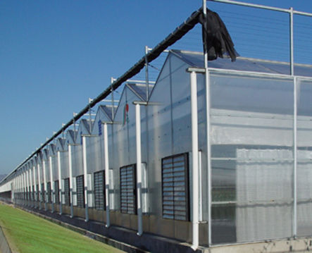 針對(duì)這種狀況,我公司根據(jù)多年溫室設(shè)施設(shè)計(jì)及施工經(jīng)驗(yàn),特別開發(fā)出一種鍍鋅板防漏滴集露槽,十分有效地解決了溫室頂部滴露問(wèn)題。此集露槽設(shè)計(jì)具有截面寬,強(qiáng)度高,外形美觀,使用壽命長(zhǎng),不易變形,能全部收集屋頂集露水等優(yōu)點(diǎn)。集露槽厚度1.0mm(一般情況為0.6—0.7mm),截面呈“幾”字形,外形尺寸為38×215mm(高×寬)。目前,鋁合金集露槽已被我公司全面淘汰。我公司在承建工程中都采用此種設(shè)計(jì)方式,用戶反映良好。