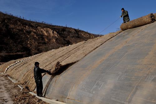 用稻草、玉米、小麥秸等農(nóng)作物秸稈打成草簾,只要沒(méi)有太陽(yáng)就覆蓋到大棚上面;見(jiàn)陽(yáng)光時(shí),及時(shí)揭去草簾。氣溫驟降時(shí),還可以在草簾上覆蓋塑料薄膜。由于草簾是熱的不良導(dǎo)體,可減少棚內(nèi)的熱量散失,避免溫度降低。