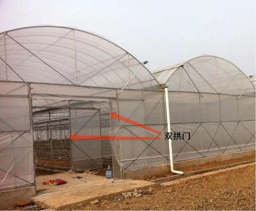 1、雙拱門和雙膜。這個(gè)結(jié)構(gòu)是在梁的頂部,加上一層拱,拱和拱之間的距離約50厘米,向上和向下形成一個(gè)絕緣層。這個(gè)骨架結(jié)構(gòu)不占用柱子下部的空間。缺點(diǎn)是內(nèi)拱支撐桿不能到達(dá)外拱,導(dǎo)致雪阻略有下降。